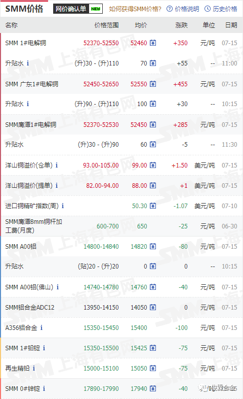 俊霖合金解讀:7月15日有色金屬行情
