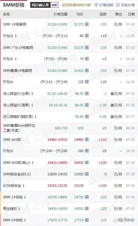 俊霖合金解讀:7月20日有色金屬行情