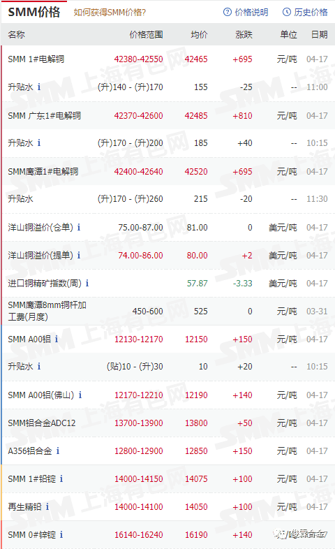 您現(xiàn)在所在位置:首頁?新聞資訊?行業(yè)新聞-俊霖合金解讀:4月17日有色金屬行情行業(yè)新聞