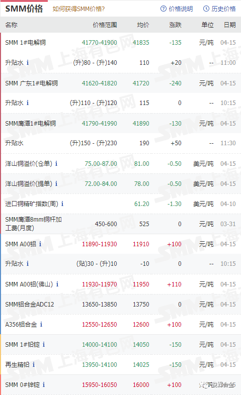 俊霖合金解讀:4月15日有色金屬行情