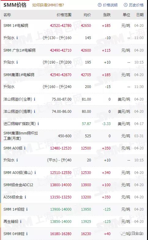 俊霖合金解讀:4月20日有色金屬行情