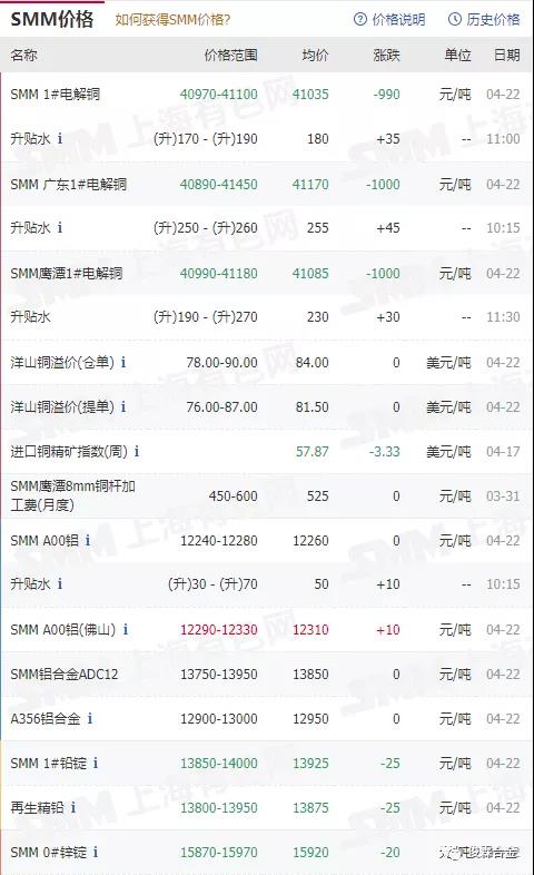俊霖合金解讀:4月22日有色金屬行情