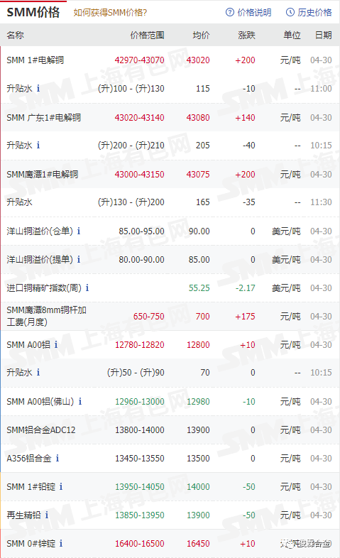 上海有色金屬最新行情