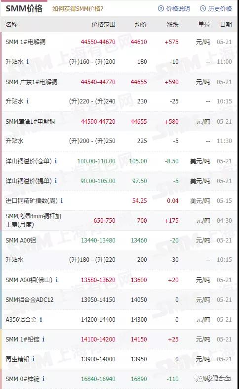 俊霖合金解讀:5月21日有色金屬行情