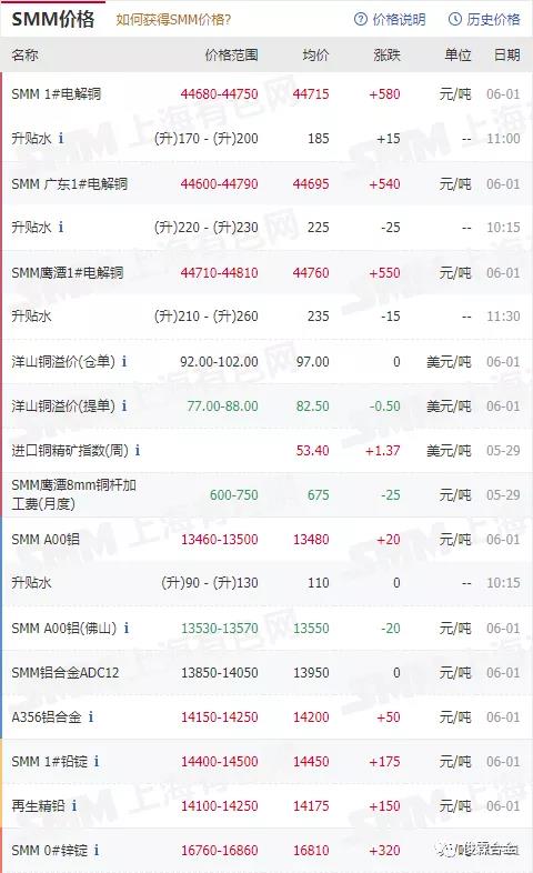 俊霖合金解讀:6月1日有色金屬行情