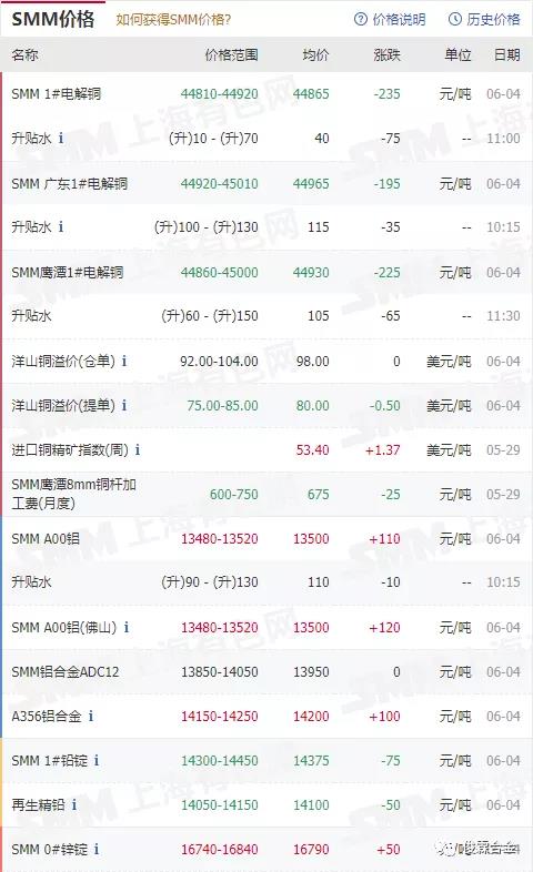 俊霖合金解讀:6月4日有色金屬行情