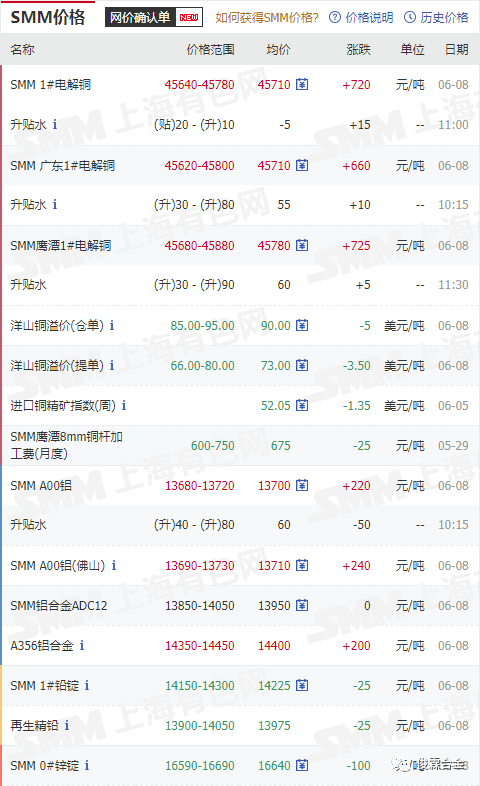 俊霖合金解讀:6月8日有色金屬行情